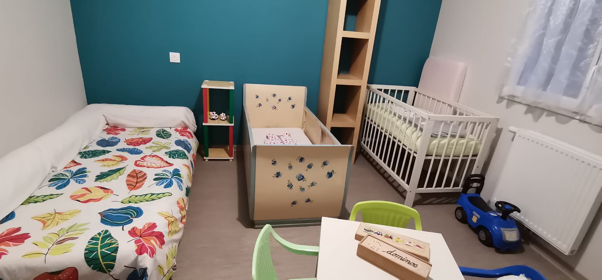 J’habite une maison neuve de deux étages, avec une grande terrasse extérieure et un jardin clôturé de 450 m2. Le rez-de-chaussée se compose d’un grand espace regroupant cuisine séjour et pièce de vie, où les enfants peuvent jouer et évoluer librement. Je dispose de deux chambres (une au rez-de-chaussée et une à l’étage) où les enfants peuvent se reposer. La troisième chambre (à l’étage) est une pièce privée fermée où les enfants n’auront pas accès.